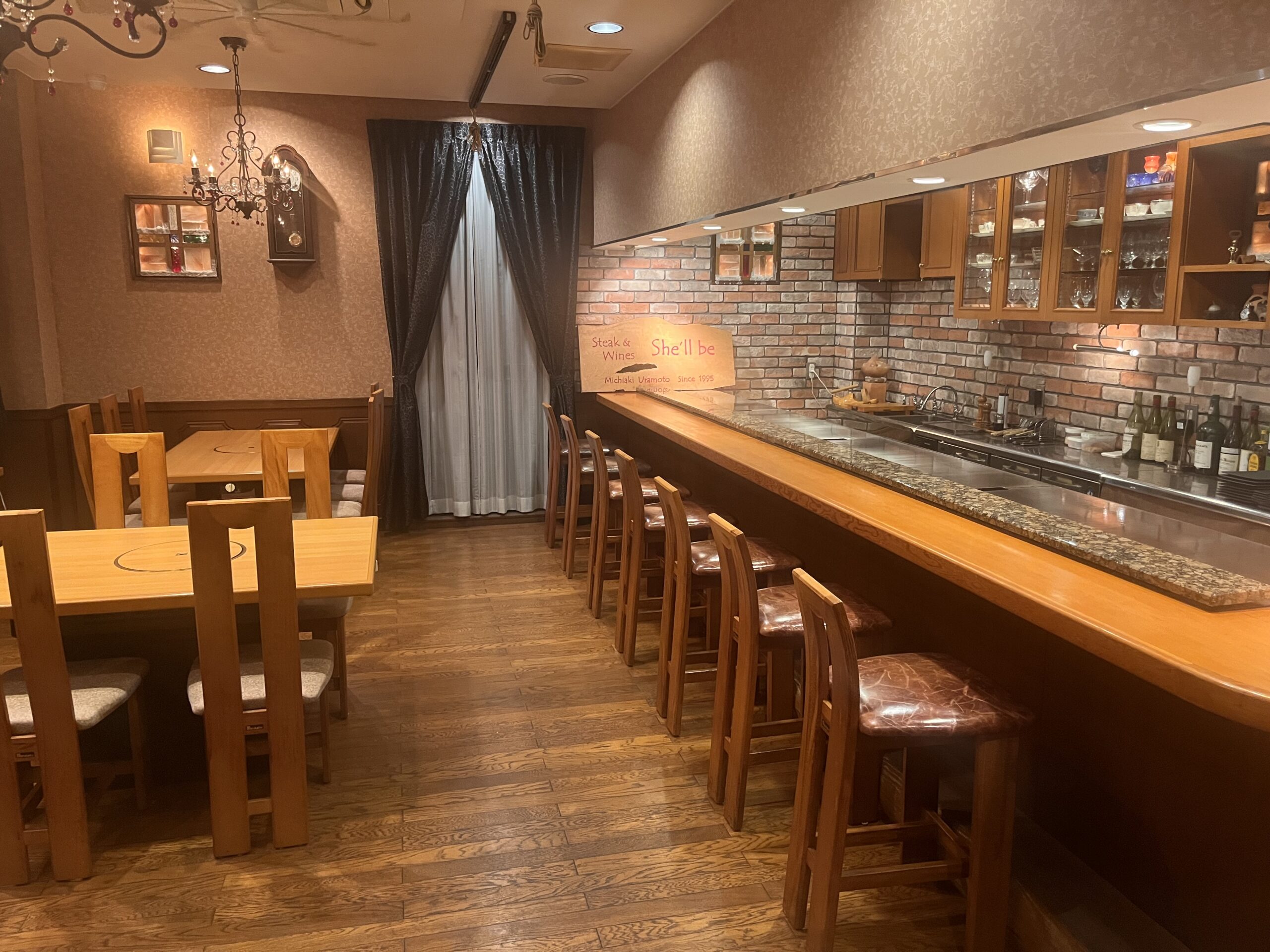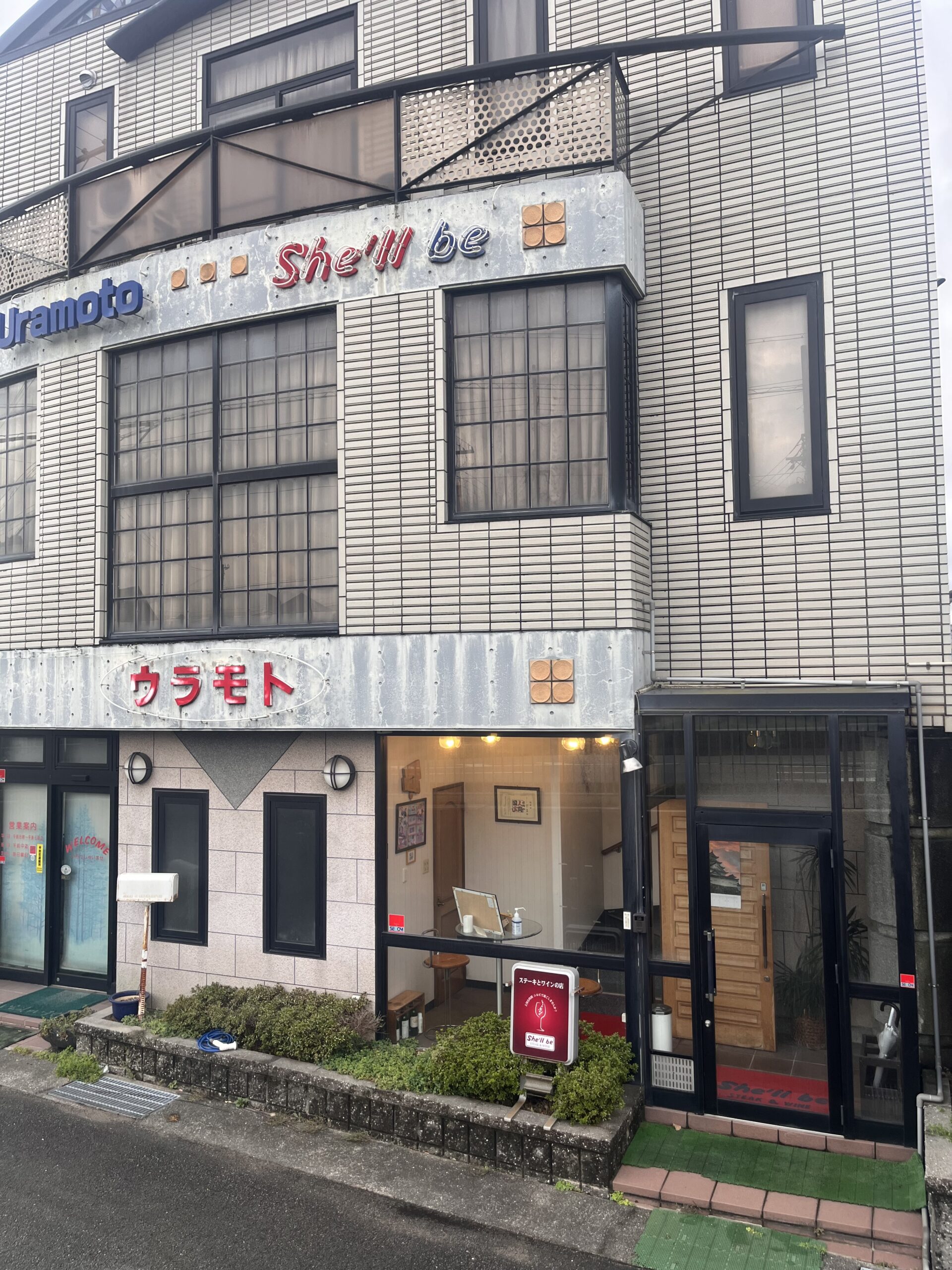 メニュー 店舗詳細 アクセス 写真紹介 tel. 079-223-5331 Steak & Wines She’ll be Since1995 ■全国各地の厳選極上肉と、 こだわりのワインを堪能できる店。 A5ランクの上質肉のみ使用全国各地のA5等級の銘柄牛から、さらに厳選した素材のみを使用し鉄板焼きで贅沢に。厳選した旨み・香りに満ちた極上のお肉をご提供いたします。また、厳選されたお肉にはワインをオススメ。常時500本以上をストックしているワインセラーより、お好みのワインをご用意いたします。 店内風景 3Fは6名様までの個室空間 店舗外観 カウンター8席 テーブル20席 3F客席と、ワインセラー The Menu ランチコース ※価格はサービス料8%、消費税10%を含んでいます ステーキランチ前菜,スープ,ステーキ,焼野菜,白飯 ¥5,346 - 焼きしゃぶランチ前菜 ,スープ,焼きしゃぶ,焼野菜,白飯 ¥5,346 - ローストビーフランチ前菜,スープ,ローストビーフ,サラダ,白飯 ¥5,346 - ビーフシチューランチ前菜,スープ,ビーフシチュー,パン ¥5,346 - ※すべてのランチコースには食後 デザートと珈琲or紅茶が付きます ディナーコース ※価格はサービス料8%、消費税10%を含んでいます ステーキコース前菜,肉寿司,パイ包スープ,ステーキ,焼き野菜,ガーリックライス ¥11,880 - 神戸ビーフステーキコース前菜,肉寿司,パイ包スープ,ステーキ,焼き野菜,ガーリックライス ¥23,760 - しゃぶしゃぶコース前菜,肉寿司,しゃぶしゃぶ,鍋野菜,うどん ¥11,880 - すき焼きコース前菜,肉寿司,すき焼き,鍋野菜,うどん ¥11,880 - 焼肉コース前菜,肉寿司,焼肉,野菜,白飯, ¥11,880 - ※すべてのディナーコースにはデザートと珈琲or紅茶が付きます お弁当 ※価格は消費税8%を含んでいます ※ご注文は2個~、前日までに注文をお願いします ステーキ弁当 ¥2,700 - 焼きしゃぶ重 ¥2,700 - カツサンド ¥3,240 - アクセス 交通手段 駐車場 JR播但線 野里駅 徒歩19分JR播但線 京口駅 徒歩29分 5台 店舗詳細 Steak & Wines She’ll be 住所 電話番号 営業時間 定休日 〒671-0256 姫路市花田町高木298 079-223-5331 11:00~14:0017:00~22:00 日曜日 住所 電話番号 営業時間 定休日 〒671-0256 姫路市花田町高木298 079-223-5331 11:00~14:0017:00~22:00日曜日 ◊ 駐車場 有(5台)◊ 1階が浦本肉店、2階・3階がShe’llbeとなっております◊ 電話での受付時間は午前9時~午後7時となっております。 ♦ ご予約に関して◊ 当店は完全予約制となっております。◊ ご予約はお電話にて受け付けております。メールでのご予約は承っておりませんのでご了承くださいませ。◊ ご予約は2名様より受け付けております。◊ ご予約は前日までにお願いします。準備の都合上当日のご予約は受け付けておりません。 tel. 079-223-5331